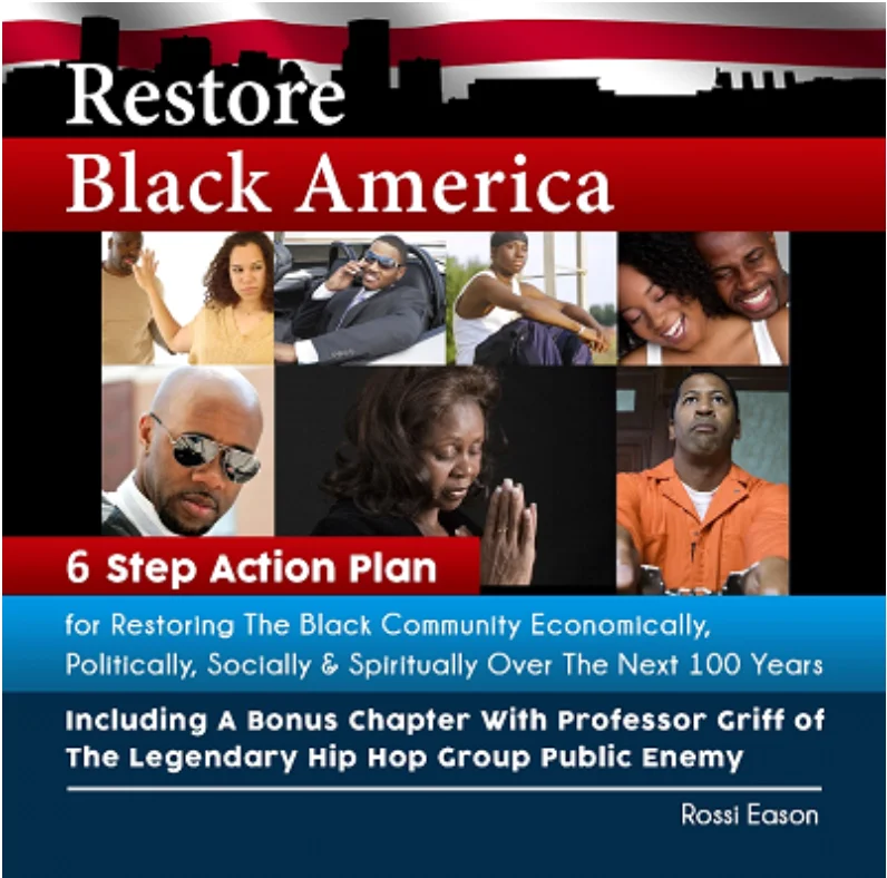 The Restore Black America book contains a defined 6 step action plan on how to achieve wealth, gain political power, rebuild the community, improve and maintain health.